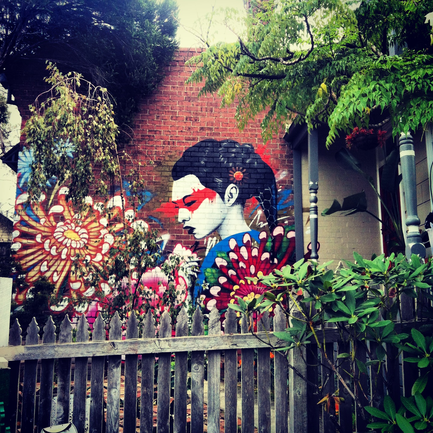 Surprisingly graffiti has not really penetrated the village apart from a bit of Yarn Bombing. There is a cracking piece down near South Kensington station. The train line between Kensington and North Melbourne, however, is still through mainly industrial buildings including a flour mill which has made it the ultimate practice ground for Melbourne’s ubiquitous graffiti scene. The gallery which runs for nearly a full kilometre from near Kensington station is definitely something to behold. Grab a window seat for the ride out to enjoy the show.